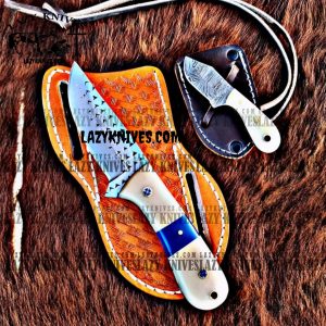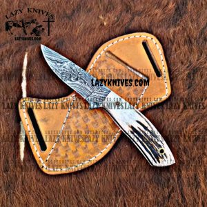 Custom Made Damascus Steel Pine Cone Handle Cowboy Knife