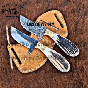 CUSTOM HANDMADE DAMASCUS STEEL BLADE & STAG HORN HANDLE KNIFE