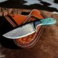 HANDMADE COWBOY CUSTOM KNIFE DAMASCUS STEEL FIXED BLADE & HANDLE MADE OF TURQUISE